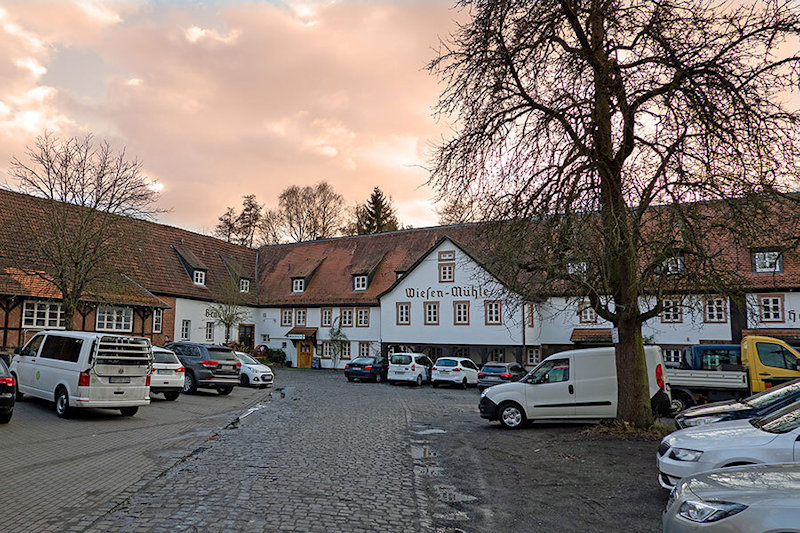| Die Wiesenmühle ist eine rustikale Brauerei mit einer beeindruckenden Außengastronomie. Bei uns gibt es hausgebrautes Bier, Pizza aus dem Holzofen und deutsche Küche. Als Treffpunkt für Jung und Alt seit über 30 Jahren stehen wir für eine einladende überregionale Brauhauskultur und für eine gute Zeit unserer Gäste. Wunderschöne Tische, rustikaler Mühlenflair und ein gemütliches Brauhausambiente erwarten Sie. Text: Wiesenmühle | ||||